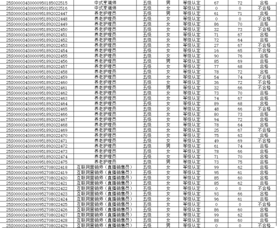 按照有关规定,我校于2025年10月16日—10月20日组织互联网营销师(直播销售员)(五级)养老护理员(五级)中式烹调师(五级)技能评价批号:(25S0000343000097488)。通过本次评价,共有99人参加此次考试,54人考核成绩合格(理论知识考试及技能操作均及格),现将评价结果予以公示如下,公示期限3个工作日