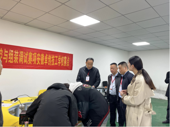 县委教育工委委员、县教育局副局长蒋志法亲临安徽卓创技工学校,对赛点的筹备与组织工作进行检查指导。他实地查看了赛场布置、设备调试及赛事流程安排等情况,详细询问了参赛选手的备赛状态与保障措施,对学校作为承办方和赛点所做的细致工作给予肯定,并强调要以高标准、严要求保障赛事公平公正开展,充分发挥技能大赛在人才培养中的引领作用。