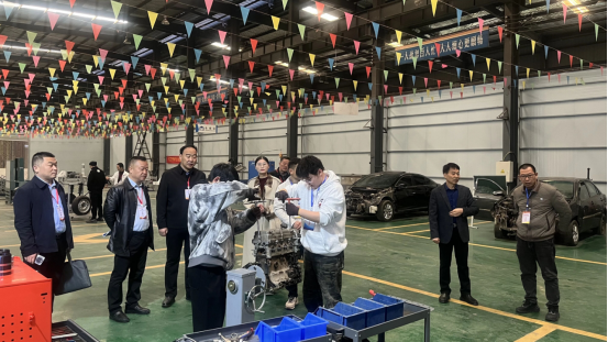 汽车维修专业的选手们围站实训车辆旁,专注排查故障、调试部件,以过硬技术展现汽修领域的专业能力;