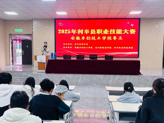 10 月 25 日,由利辛县教育局主办、安徽卓创技工学校承办的利辛县 2025 年职业技能大赛开幕式,在安徽卓创技工学校实训中心报告厅隆重举行。该校各赛项负责人、参赛选手及志愿者代表等近 100 人齐聚现场,共同见证这场技能比拼盛会的正式启幕。