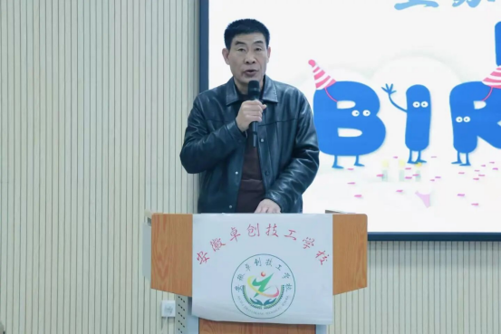 生日会在主持人张晓蕾主任亲切柔和的开场白中正式拉开序幕。她代表学校向十月寿星师生送上最诚挚的生日祝福,温情话语瞬间让现场暖意融融。随后,王友东校长登台致辞,向本月过生日的师生表达热烈祝贺。他寄语同学们珍惜在校时光,常怀感恩之心,刻苦钻研、努力成才;同时感谢全体教职工的辛勤耕耘与无私奉献,希望卓创大家庭的每一位成员都能在爱与关怀的滋养中携手同行、共同成长。校长情深意切的讲话,字里行间饱含着对师生的殷切期望,赢得了全场师生的热烈掌声。