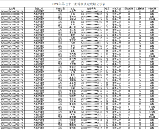 按照有关规定,我校于2024年8月15日组织了养老护理员(五级)技能评价(批号:24S0000343000098370。通过本次评价,共有77人参加此次考试,67人考核成绩合格(理论知识考试及技能操作均及格),现将评价结果予以公示如下,公示期限3个工作日。