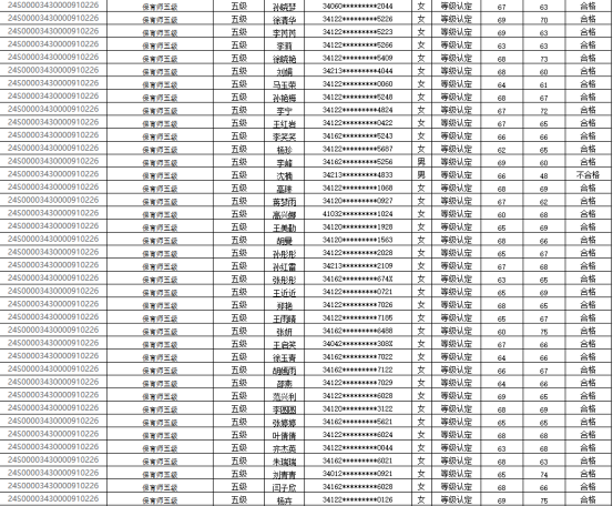 按照有关规定,我校于2024年11月3日组织了育婴师(五级),技能评价(批号:24S00003430000910226)。通过本次评价,共有107人参加此次考试,101人考核成绩合格 (理论知识考试及技能操作均及格),现将评价结果予以公示如下,公示期限3个工作日。