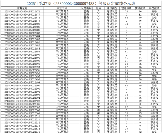 按照有关规定,我校于2025年10月16日—10月20日组织互联网营销师(直播销售员)(五级)养老护理员(五级)中式烹调师(五级)技能评价批号:(25S0000343000097488)。通过本次评价,共有99人参加此次考试,54人考核成绩合格(理论知识考试及技能操作均及格),现将评价结果予以公示如下,公示期限3个工作日