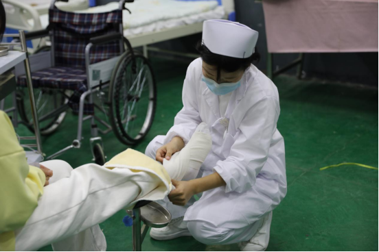 中医护理专业的选手们娴熟运用艾灸、推拿等技法,在传承中医智慧中展现特色护理技能;