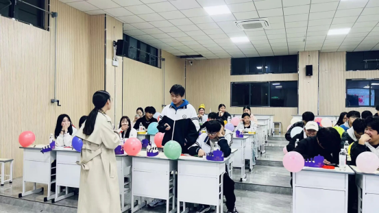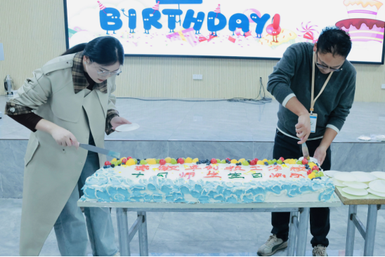 紧接着,王小明主任与张晓蕾主任亲自为大家切分蛋糕,将甜蜜与喜悦传递给在场的每一个人。师生们分享着香甜的蛋糕,畅谈着生活的美好,脸上洋溢着幸福的笑容,整个校园都沉浸在温馨欢乐的氛围中。