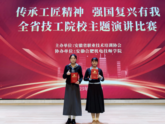 捷报传来,硕果盈枝!在2025年11月1日举行的安徽省全省技工院校“传承工匠精神、强国复兴有我”主题演讲比赛中,我校学子在蔡丽、潘洪仪、刘凯蓉、陈雨嘉四位老师的悉心指导下凭借出色的表现,从众多参赛者中脱颖而出,斩获一等奖与三等奖的优异成绩,学校同时荣获“优秀组织奖”,实现了比赛成绩与精神文明的双丰收!