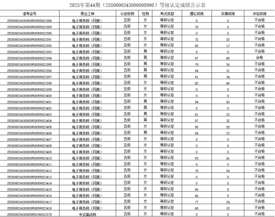 职业技能等级评价成绩公示