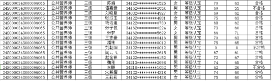 按照有关规定,我校于2024年5月27日组织了公共营养师(三级)技能评价(批号:24S0000343000096065)。通过本次评价,共有133人参加此次考试,127人考核成绩合格(理论知识考试及技能操作均及格),现将评价结果予以公示如下,公示期限3个工作日。